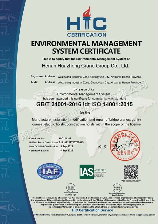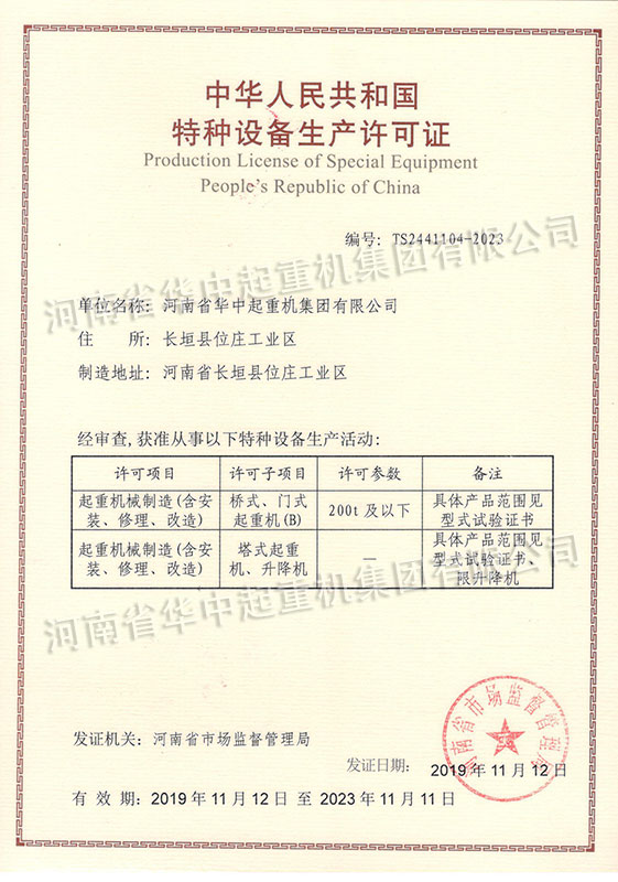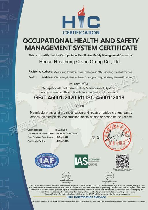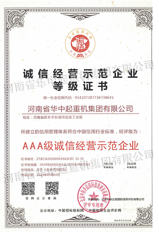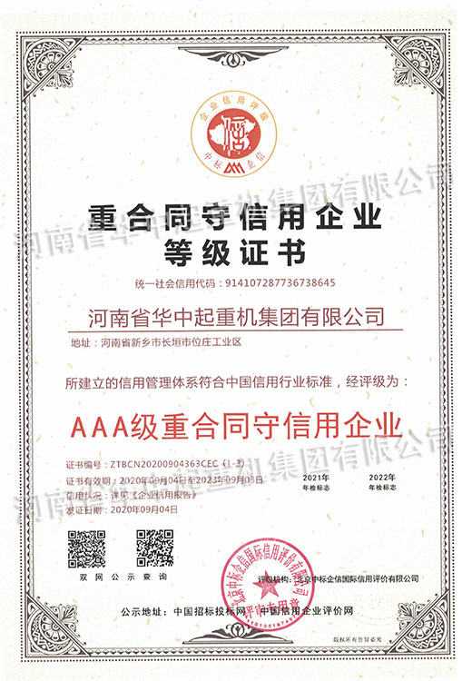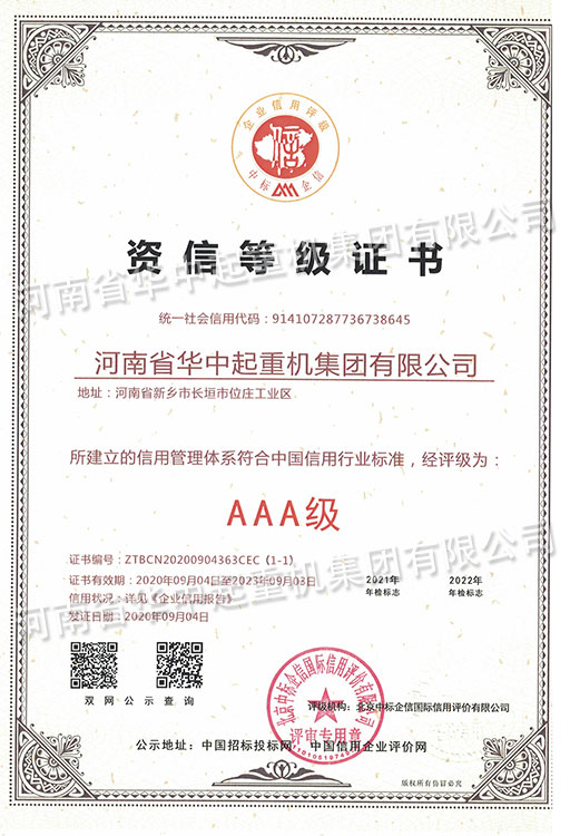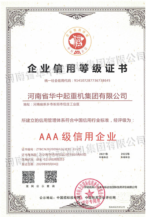 拥有**的生产设备、雄厚的技术实力、成立了**工程技术研究中心和成熟的生产线,检测设备齐全,质保体系完善,售后服务健全,先后通过了ISO19001质量管理体系认证、ISO24001环境管理体系认证,ISO45001职业健康与安全管理体系认证,武器装备质量管理体系认证证书和两化融合管理体系评定证书等,曾荣获“中国知名起重机十佳品牌”、“消费者信得过单位”、“全国质量信得过单位”等多项荣誉。